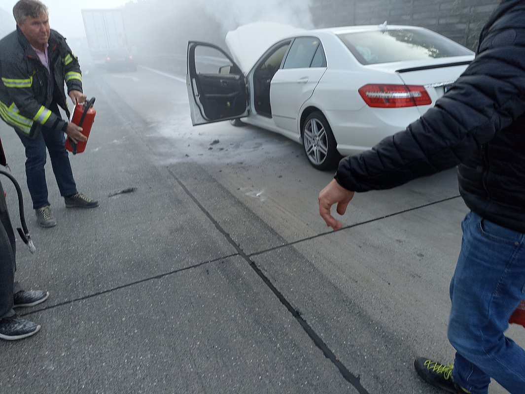 Einen nicht alltäglichen Einsatz hatten Mitglieder unserer Betriebsfeuerwehr: Bei einer Dienstreise zu einer Feuerwehrausbildung (des sogenannten „Hot Fire Drills“) - nach Wien bemerkten Kollegen unserer Betriebsfeuerwehr auf der Autobahn A1 kurz vor Wels ein Fahrzeug, das am Pannenstreifen abgestellt war und aus dem Rauch drang. Dank der mitgeführten Feuerlöscher konnte der Brand unter Kontrolle gebracht und wenig später gelöscht werden. Vielen Dank an unsere Kollegen für den beherzten Einsatz!