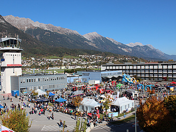 Abseits des bunten Geschehens auf der Vorfeldseite dürfen sich die Besucherinnen und Besucher auf unterschiedlichste Attraktionen auf den Parkplätzen vor dem Flughafengebäude freuen. Dazu gehören Hüpfburgen, Riesenrutschen, ein Kinderkarussell, eine Mal- und Bastelstation sowie Stationen des Österreichischen Bundesheeres, der Feuerwehr, der Polizei, der Rettung, der MÜG, des Samariter Bundes, des ÖAMTC, der Swarco Raiders, der Innsbrucker Haie oder der Geosphere Austria (ehem. ZAMG), die zum Informieren und Ausprobieren einladen.