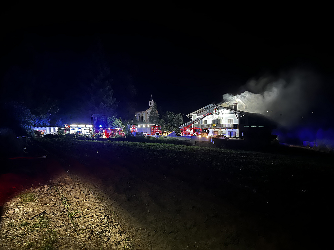 In der darauffolgenden Nacht kam es zu einem weiteren Unterstützungseinsatz im Rahmen eines Großbrandes in Innsbruck - Vill (Pension Pembaurhof). Auch hier waren das 9000l-Löschfahrzeug sowie 2 Mann vor Ort im Einsatz.