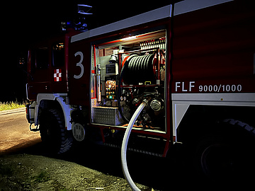 Mitglieder der Flughafenbetriebsfeuerwehr sowie ein großes Löschfahrzeug waren am 13./14. Juni außerhalb des Flughafengeländes tatkräftig im Einsatz.