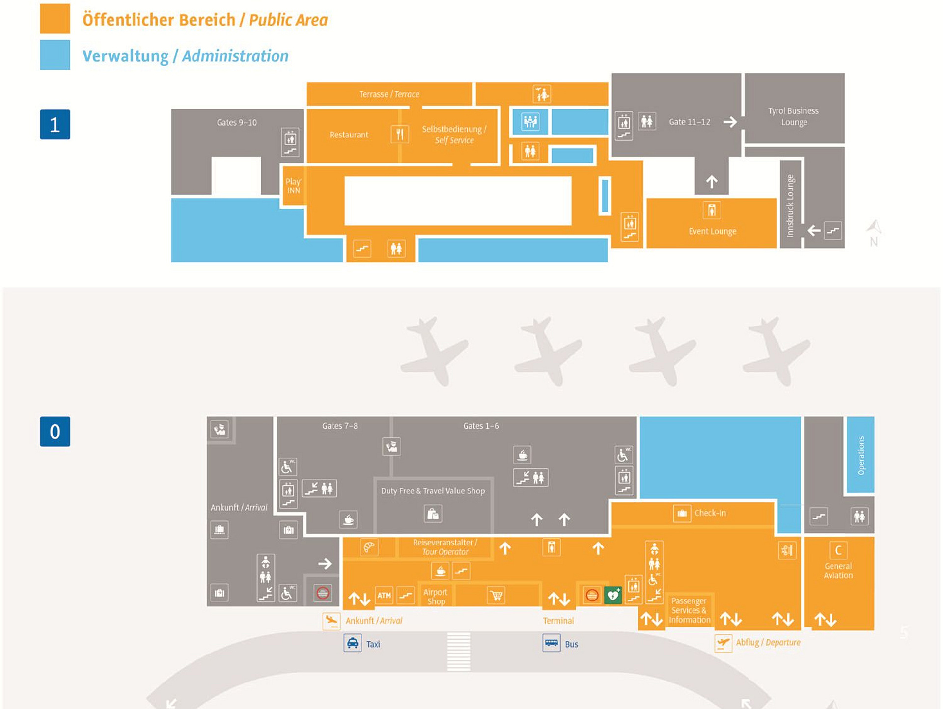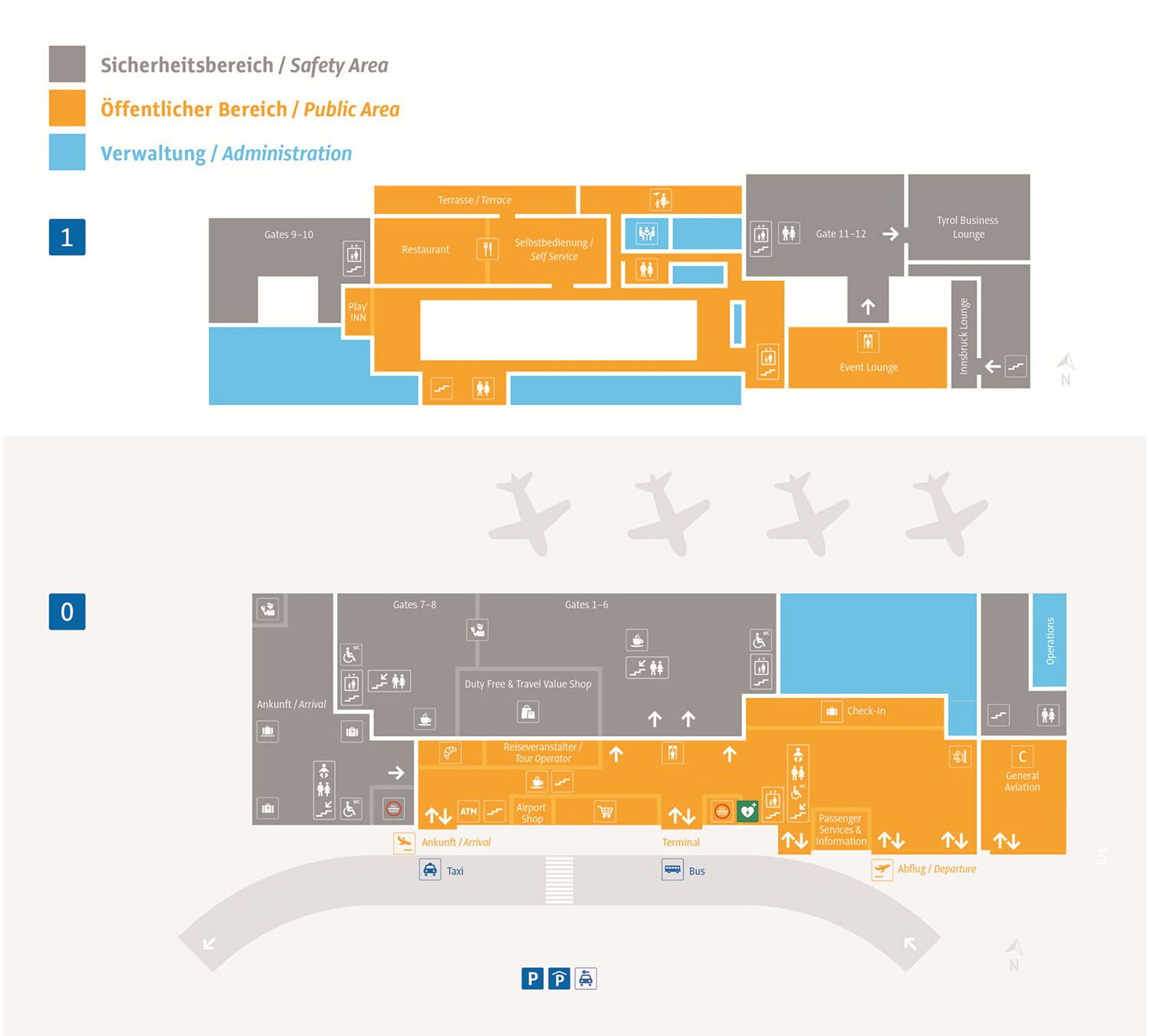 Der Flughafen Innsbruck zeichnet sich unter anderem durch seine Übersichtlichkeit aus. Damit Sie aber auf keinen Fall den Überblick verlieren, hier unser Lageplan zur noch leichteren Orientierung.