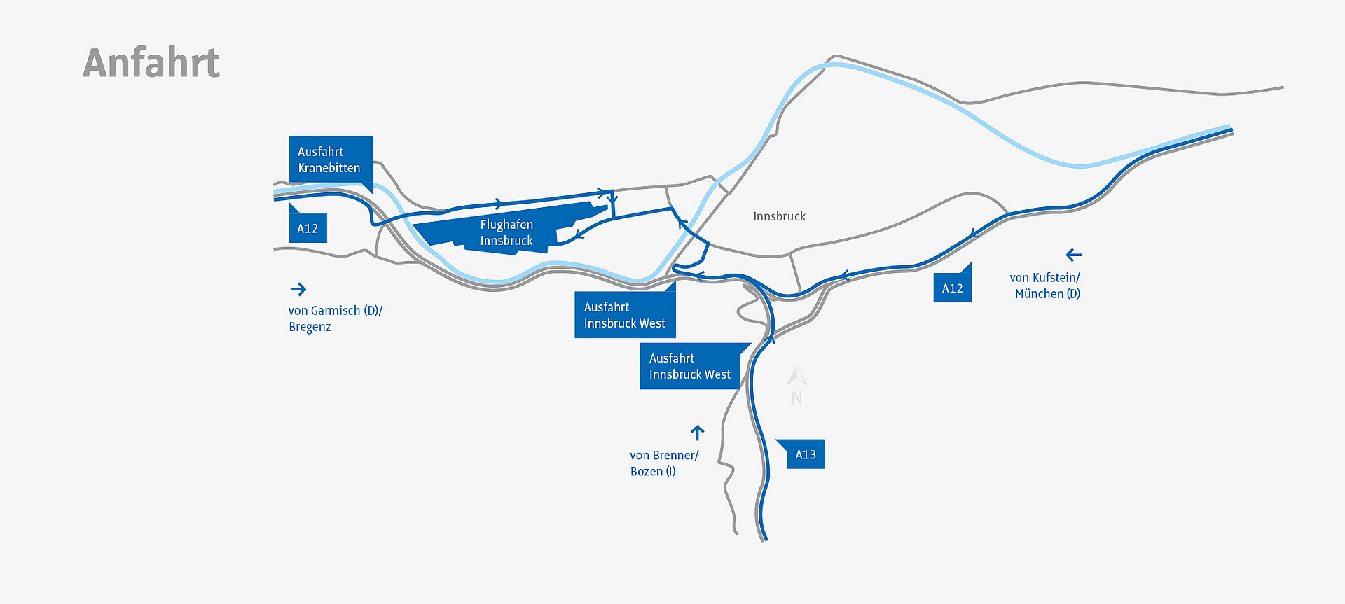 Der Flughafen Innsbruck im Herz der Alpen ist durch seine zentrale Lage angenehm und leicht erreichbar. Am Stadtrand der Landeshauptstadt Innsbruck gelegen ist die Anbindung an die innerstädtischen Verkehrsmittel und die Autobahn sehr gut.
