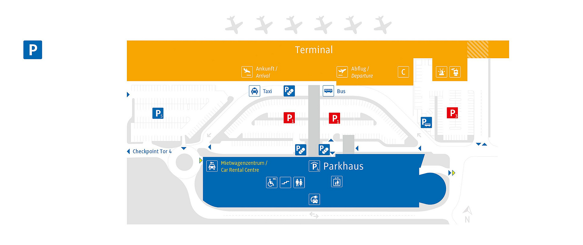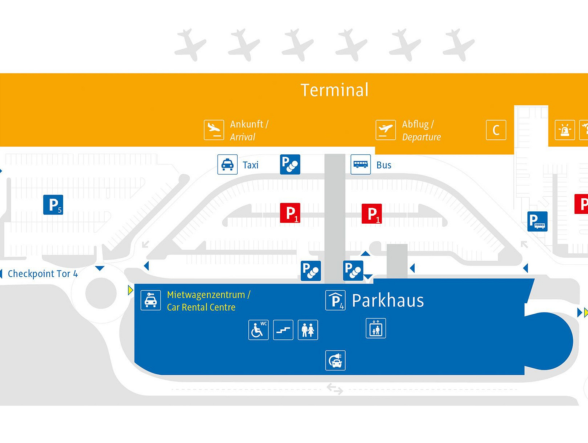 Sie können frei wählen, ob Sie auf einen unserer Kurzzeitparkplätze (P1 / P3) oder auf den Langzeitparkplätzen (Parkhaus P4 / P5) parken möchten. Bitte beachten Sie die unterschiedliche Tarifgestaltung für Kurz- und Langzeitparken (siehe Parktarife).