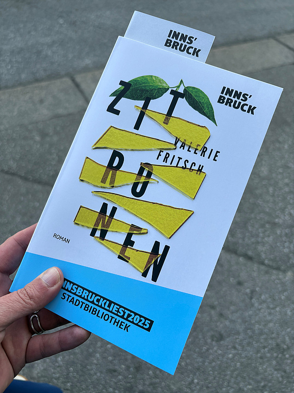 Mit dem Roman »Zitronen« von Valerie Fritsch lädt die Stadtbibliothek vom 6.–14. Mai zum literarischen Erlebnis. Im Rahmen der Leseaktion werden bereits zum 21. Mal 10.000 Bücher verschenkt und kostenlose Veranstaltungen angeboten. Erhältlich ist das von einer Fachjury ausgewählte Buch ab 06. Mai an Verteilorten und bei Verteilaktionen in ganz Innsbruck. Nähere Infos zur Aktion unter: Innsbruck liest - Stadtbibliothek Innsbruck.