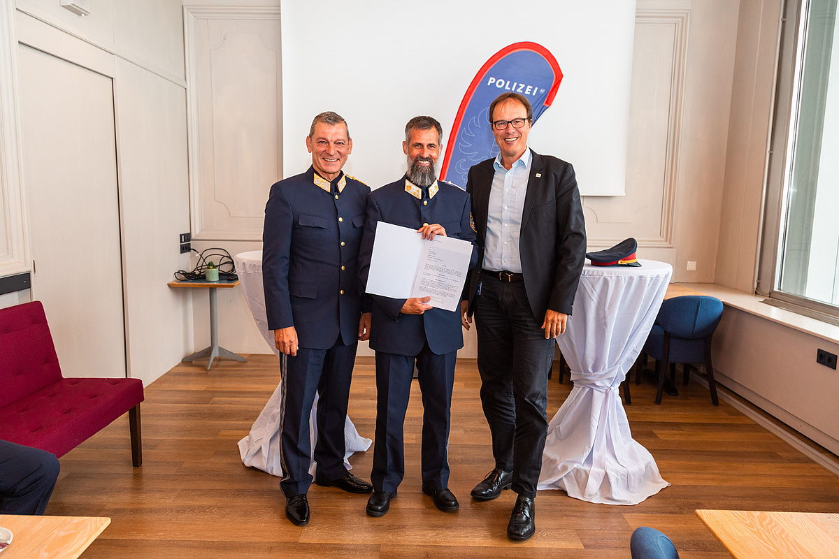 Am Bild: v.l.n.r. HR Mag. Helmut TOMAC, ChefInsp Harald STAUDACHER, Dipl.Ing. Marco PERNETTA
