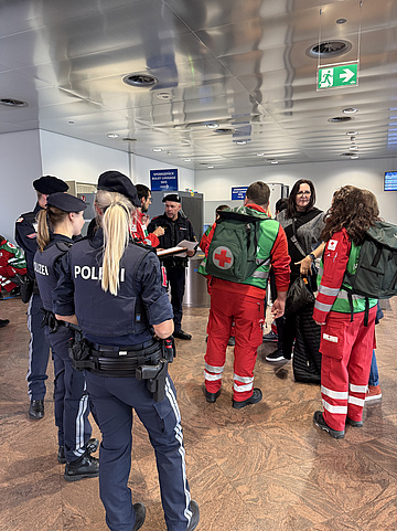 Petra Sansone, Leitung Kriseninterventionsteam des Roten Kreuz Innsbruck, unterstreicht die Wichtigkeit von großangelegten Übungen: „Wir verfügen beim Roten Kreuz über etablierte Strukturen für große Schadensereignisse und Katastrophen. Der Flughafen Innsbruck ist ebenso auf Unglücksfälle vorbereitet und hat zudem viele Vorgaben einzuhalten. Daher ist es unerlässlich, Situationen zu beüben, von denen wir zwar hoffen, dass sie nie eintreten werden, wo wir jedoch zusammenarbeiten würden, um betroffene Menschen bestmöglich zu unterstützen. Vielen Dank dem Flughafen Innsbruck für diese spannende und lehrreiche Übung!“