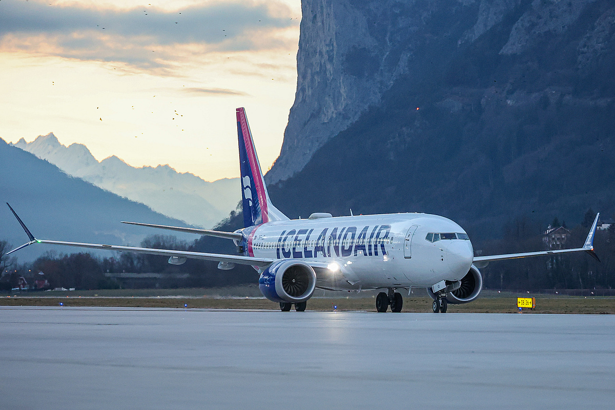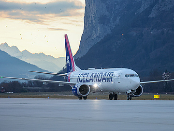 Überpünktlich landete heute Nachmittag um 17:07 Uhr erstmalig eine Boing 737 Max der Icelandair mit 150 bestens gelaunten Passagieren an Bord am Flughafen Innsbruck. Genau zu Sonnenuntergang setzte die Maschine in Innsbruck auf.