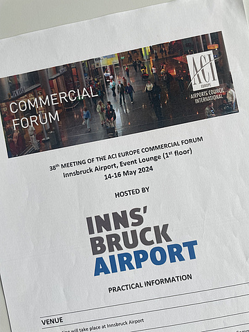 Von 14. Bis 16. Mai 2024 war das ACI (Airports Council International) EUROPE Commercial Forum zu Gast am Flughafen Innsbruck. Zum 38. Mal trafen sich rund 50 Vertreterinnen und Vertreter von ACI EUROPE sowie den Flughäfen Wien, Zürich, Athen, Frankfurt uvm., um sich über Non-Aviation Projekte in der Branche und zukünftige Entwicklungen auszutauschen.