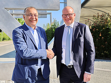 Neuer Präsident der AÖV ist der Geschäftsführer des Flughafen Linz, Mag. Norbert Draskovits (links), der diese Funktion turnusmäßig von Flughafen Wien-Vorstand Mag. Julian Jäger (rechts) übernimmt.